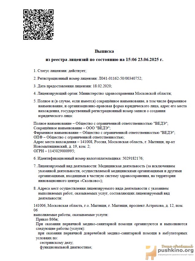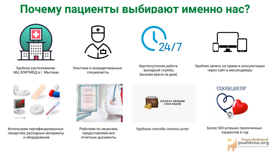 Прием в МЦ ЭЛИТМЕД (г. Мытищи, просп. Астрахова д. 12 пом. 6) - по предварительной записи